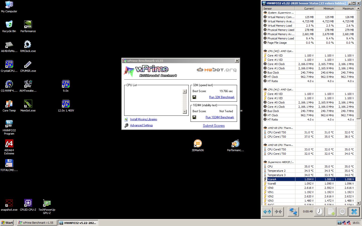 Tegnap megjöttek az utolsó komponensek is, úgyhogy összeépítgettem gyorsba a cuccot, áram alá helyeztem, majd zártam a megfelelő pineket ! Az elektronok áramlani kezdtek, pörögtek a ventik majd pár rövidke másodperc után 2 hangos csippanás és kékre váltott a monitor diag ledje ! Ami utána történt az tán igaz se volt ! H8DCE alive !!