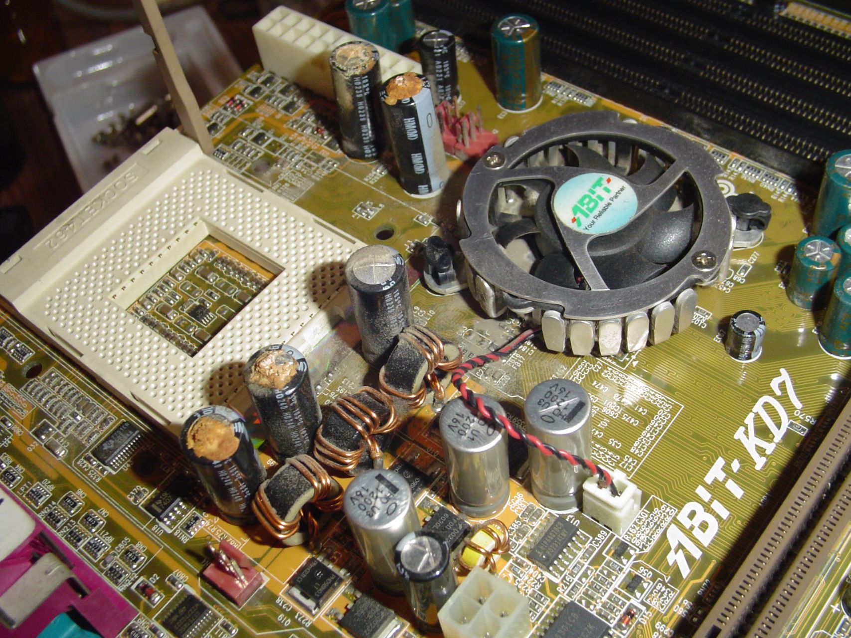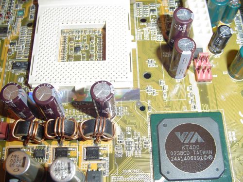 Érdekes, hogy a lapon a proci körül lévő kondikon kívül még vagy 16 puposodó kondi volt mindenfelé. A PCI slotok között, a battery mellet, a ramok mellet szal mindenhol. A púposodásnak indultakat kicseréltem. A többit azért nem mert egyszerűen nincs több. Elfogyott a készlet.