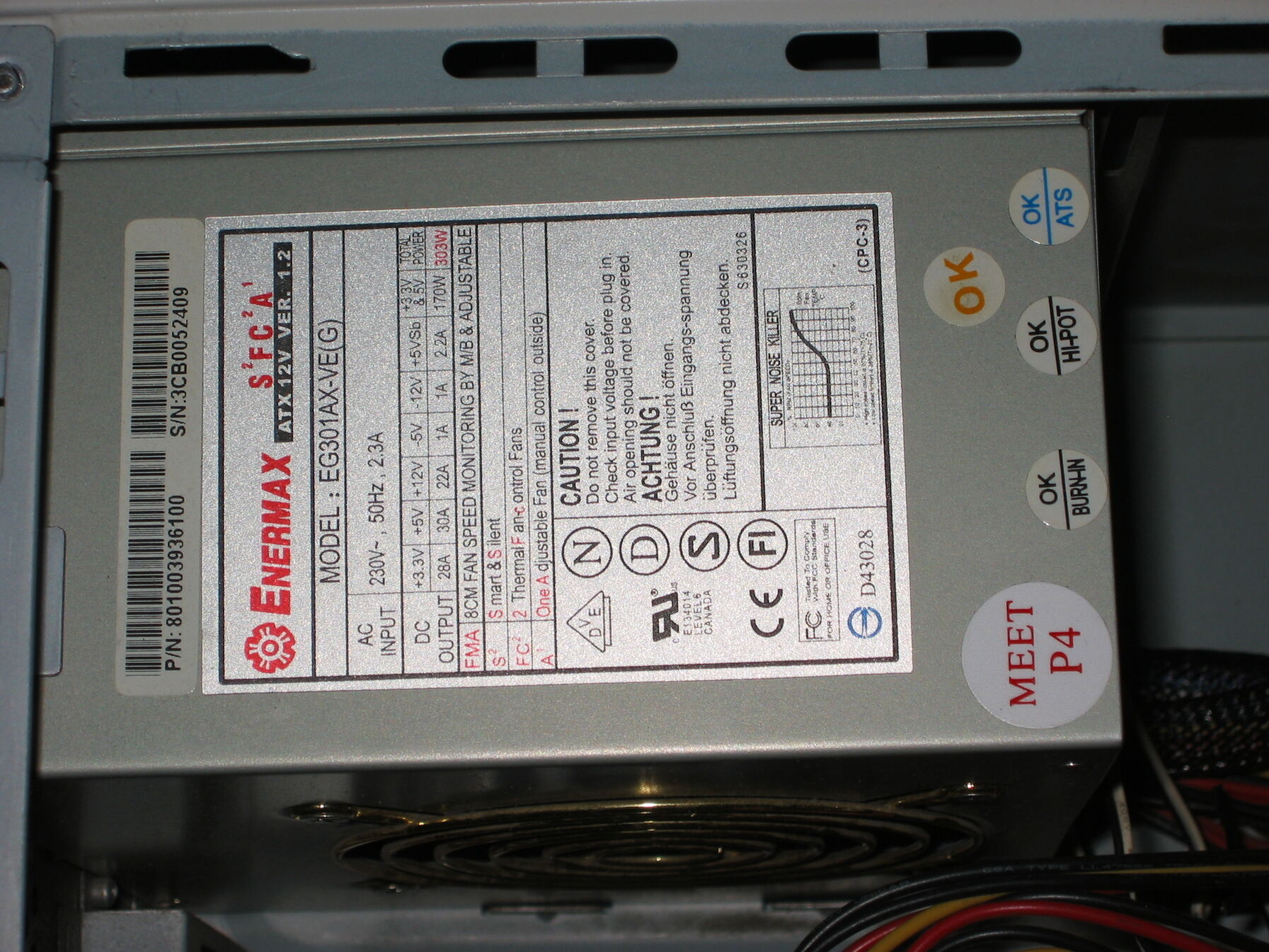 A kép magért beszél, ami nem látszik: Celeron 2800, 1GB DDR400, Potival szabályozható Enermax táp, azt ugyan nem tudom, hogy a poti mit állít a minimumot, vagy fix értéket, majd kiderül: