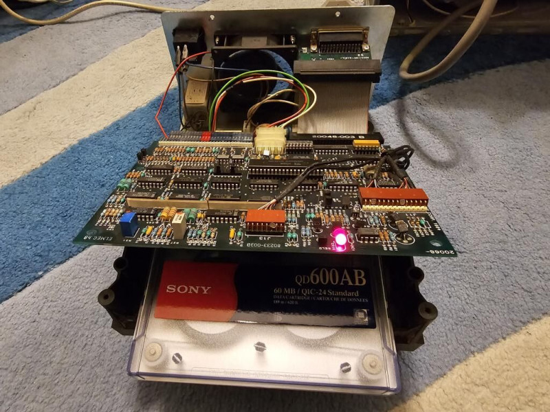 Szóval az van hogy eléggé bejön a szalagos adattárolás téma, mai napig használok LTO-t backupra és archiválásra. A régi technológiák egy része (mint például a QIC) viszont kimaradt.Na szóval pár hete vakerán belefutottam egy eladó Archive FT-60 külső drive-ba. Teszteletlen, se vezérlő kártya hozzá se kazetta, csak egy szál saját szabványú kábel. Gondoltam ez pont jó lesz arra hogy esetlegesen végtelen mennyiségű időt elcsesszek itthon amíg szabadságon vagyok. Na meg persze dolgozott bennem a kíváncsiság meg jó kihívásnak tűnt. Megvettem. Közben elkezdtem utánajárni hogy miféle cucc ez, hogyan tudnám beizzítani. A neten nincs rettentő sok infó róla de azért van néhány fórumbejegyzés amit hozzám hasonló kíváncsi szaktársak írtak az elmúlt évtizedben. Kiderült hogy ez egy elég régi típus ami még QIC36-os szabványt használ a kommunikációhoz (spec kártya / spec kábel/ spec protokoll). DC600A típusú kazettákat támogat amelyek kapacitása kemény 60 MiB. Akkor keressünk kártyát és kazikat. Itthon semmi, ebay-en ahogy várható volt minden arany áron. Itt nincs happy end, vettem egy 5-ös pakk bontatlan Sony kazettát és megkerestem a legolcsóbb gyárilag hozzávaló kártyát ami SC499R névre hallgat. Mindkettőre tudtam tenni egy -10%-os offert amit el is fogadtak. Persze még így is drága volt.