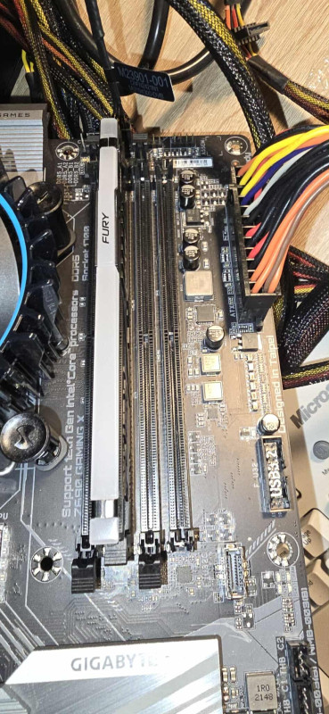 Gigabyte Z690 Gaming X DDR5Múlt héten elkapott a NAS építhetnék, előkotortam a fiókból és bár semmilyen LGA1700-as cuccom nem volt gondoltam azért ráindítok. A CPU led jelzett is ezért úgy döntöttem adok neki egy esélyt. Hétvégén megvettem a közelben lévő legolcsóbb LGA1700-as procit, egy használt i3-12100-at (27 000-ért ) és sikerült még múlt héten elcsípnem egy 2x8GB-os 6000-res Fury kitet 17200 ért, ez utóbbi ma érkezett meg. Csont nélkül indul a cucc