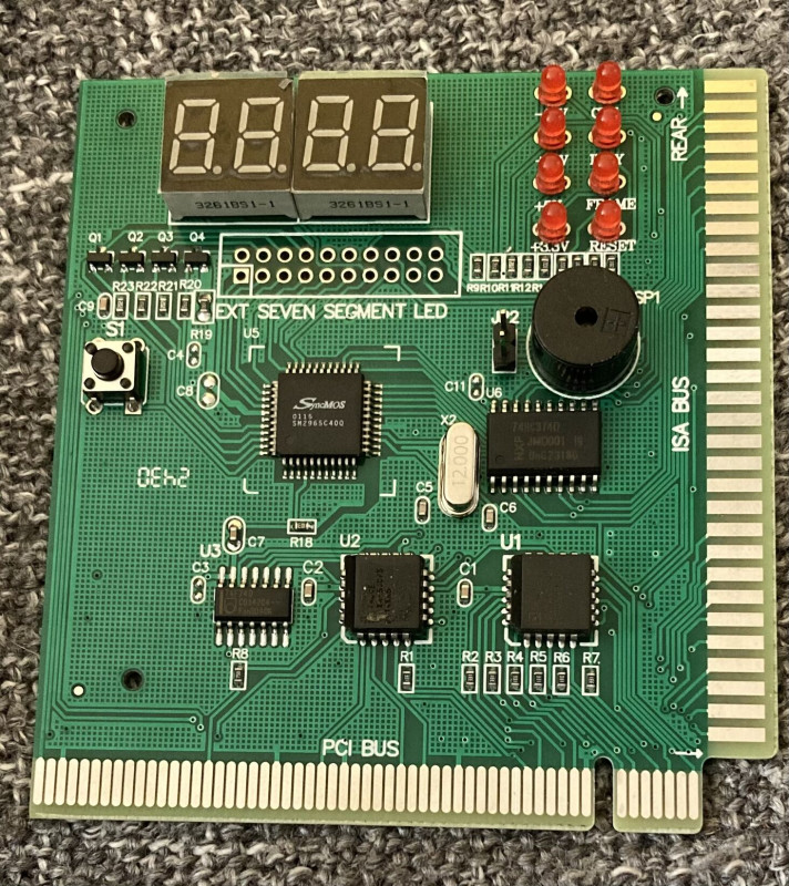 Leteszteltem még a csipogó hibát, megerősítést nyert hogy a modern pici csipogóval fagy, amit korábban is tapasztaltam de igen ritkán, más lapok esetében is.Valamint kiderült, megy a 16 bites I/O kártya is benne, floppy vezérlő és a soros port (egérnek) is működik a 8 bites buszon.
