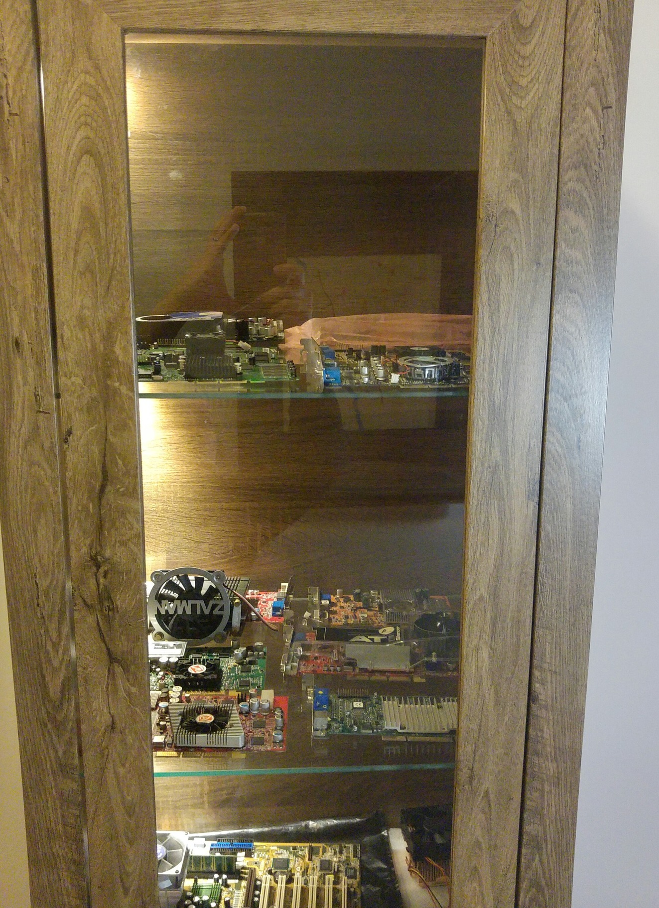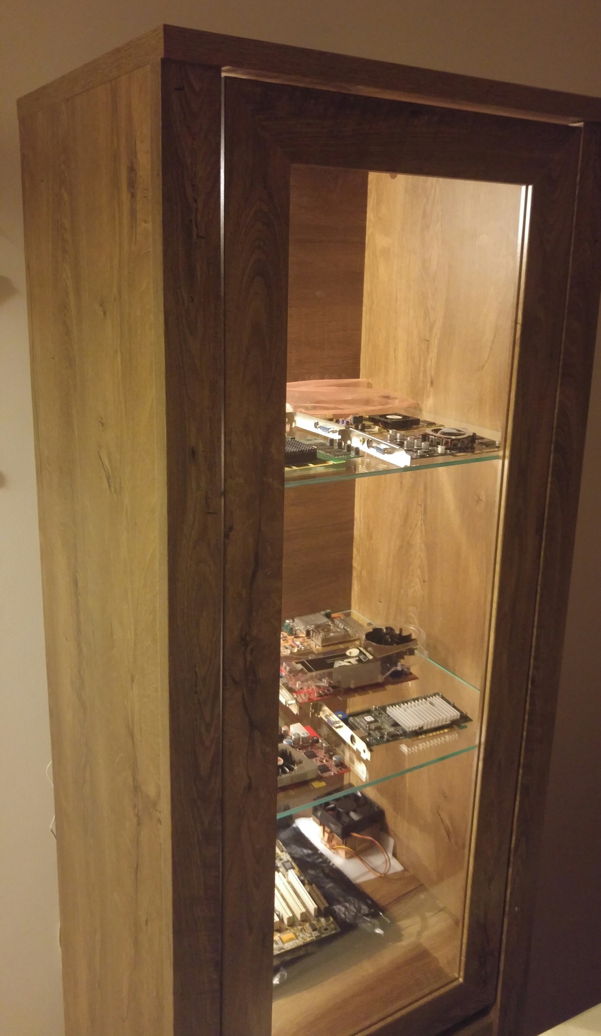 Régóta szeretnék a régi cuccaimnak valamilyen vitrint. Hosszas - skandináv bútorboltokban töltött - keresgélés után a jyskben találtam vitrint (36 ezer magas üvegajtó mögött két üveg polccal, alul egy fa ajtós polcos résszel, legalul fiókkal) és az ikeából szerváltam ledes világítást.