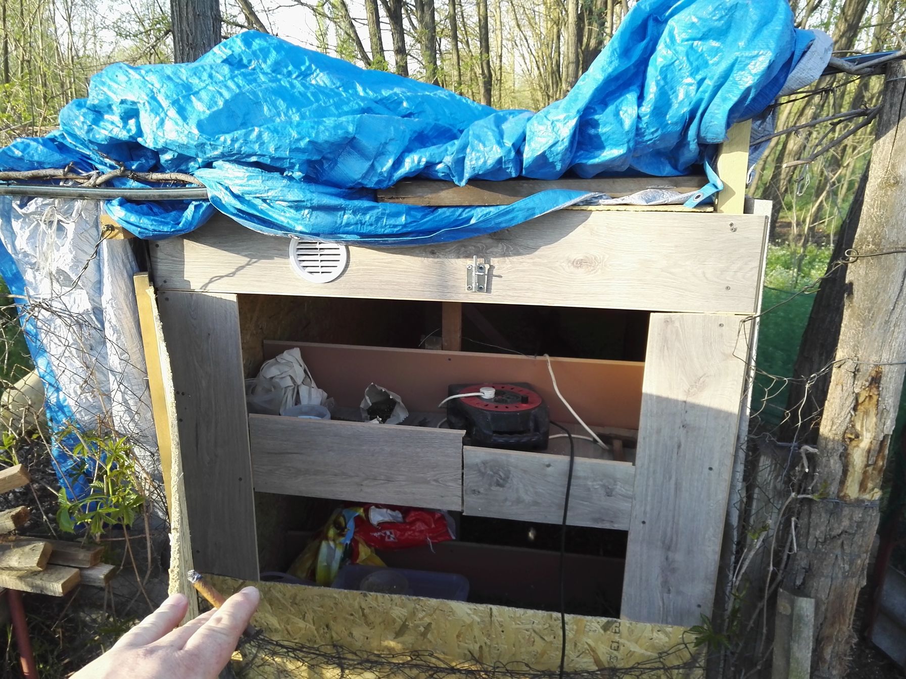 Az ól "eleje", innen lehet majd a tojást kiszedni, nem kell bemenni a tyúkudvarba.