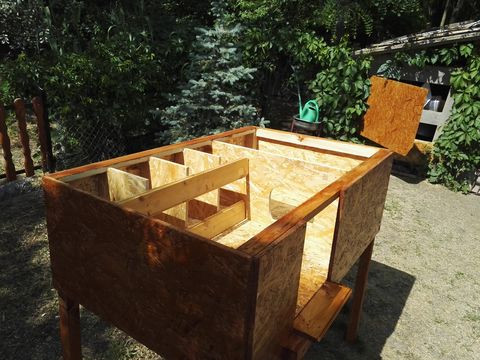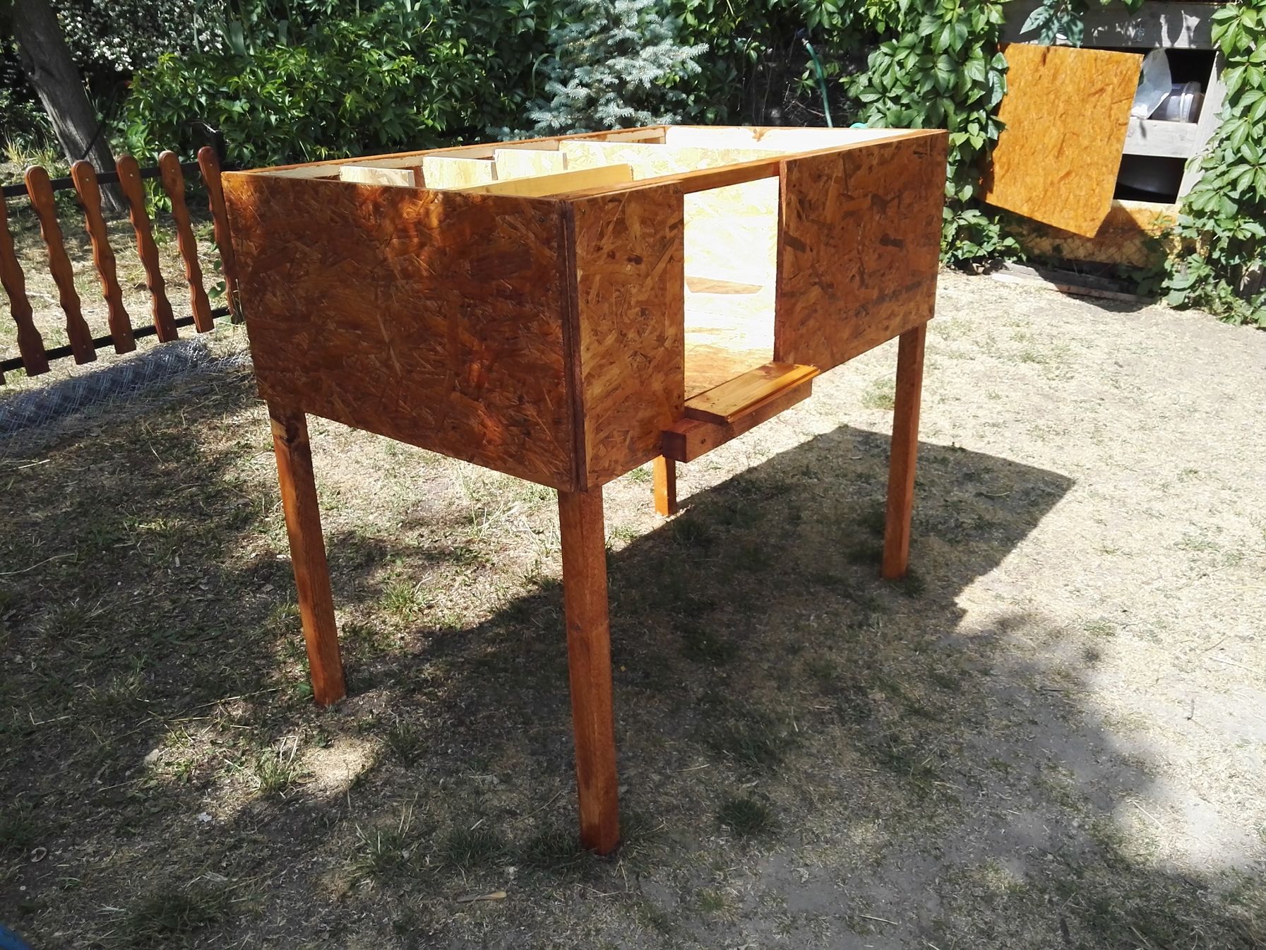 közben már a helyére került, kapott egy OSB+pala tetőt, nyitható, kitámasztós, mert ugye takarítani is kell. A tojós rekeszek kivehetők, h könnyebb legyen takarítani. Remélem a hét végéig mehetünk a kis fürjikékért is. -