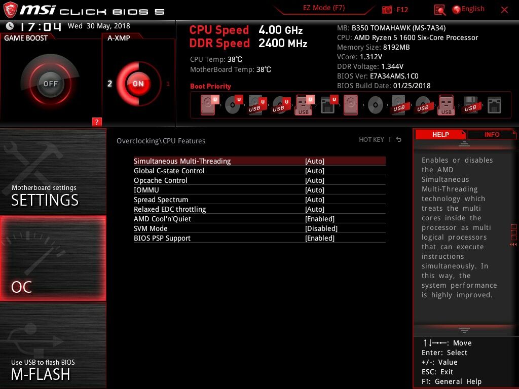 SMT: auto vagy disabled. Auto bekapcsolja, de enablednél bukott tuningon, ua. autoval ment. Kikapcsolva sem jobb a tuning, ezt mondjuk próbáltam