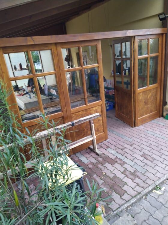 Nyitott teraszból zárt lesz, de könnyen elbontható tavasszal. Csinálja a szoba ajtómat is, fenyőből lesz.