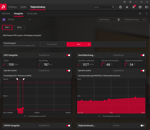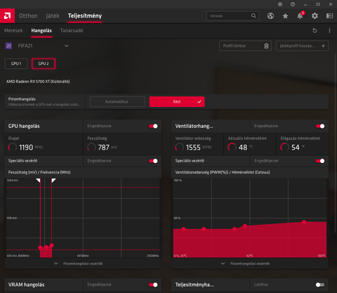 Teljesítmény/Hangolás fülön csak az 5700XT-m látható