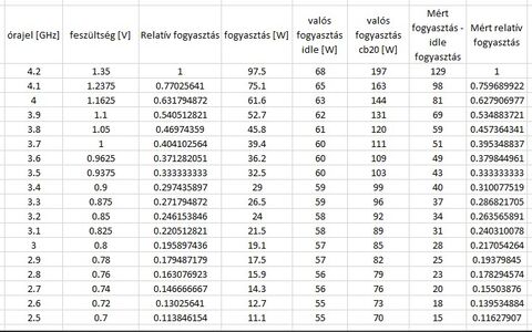 Picit faragtam a órajel feszültség fogyasztás táblázatomon.