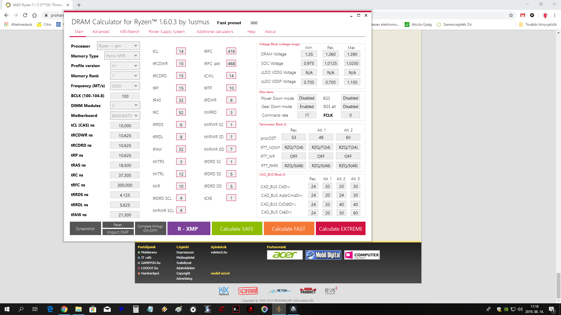 Még az a gondom hogy a Thaipphoon reader csak annyit olvasott ki a ramból hogy Hynix a dram calculator viszont 3 fajtát kínál:MFR, AFR, CJR. Én az elsőt (MFR) választottam ki, ez rendben van? Kis megerősítés előtt nem merem beírkálni a kidobott értékeket a biosba.