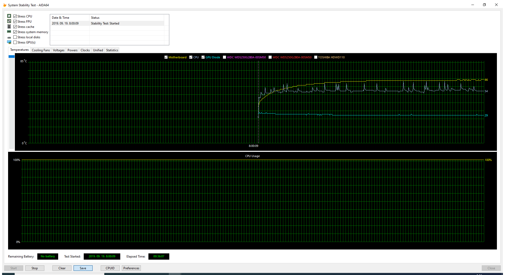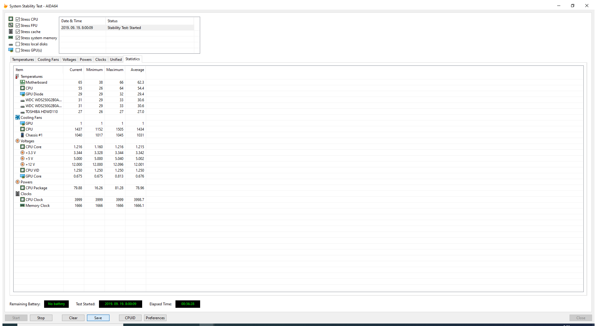 Újra jelentkezem! Úgy döntöttem, hogy felteszek egy új rendszert és úgy megnézem mi a helyzet. Tényleg nem volt már más ötletem. Na szóval új win10 csak a driverek telepítve auto bios. 35 perc Aida stability test. CPU, FPU, Cache, Memory pipa. Ezek az értékek születtek