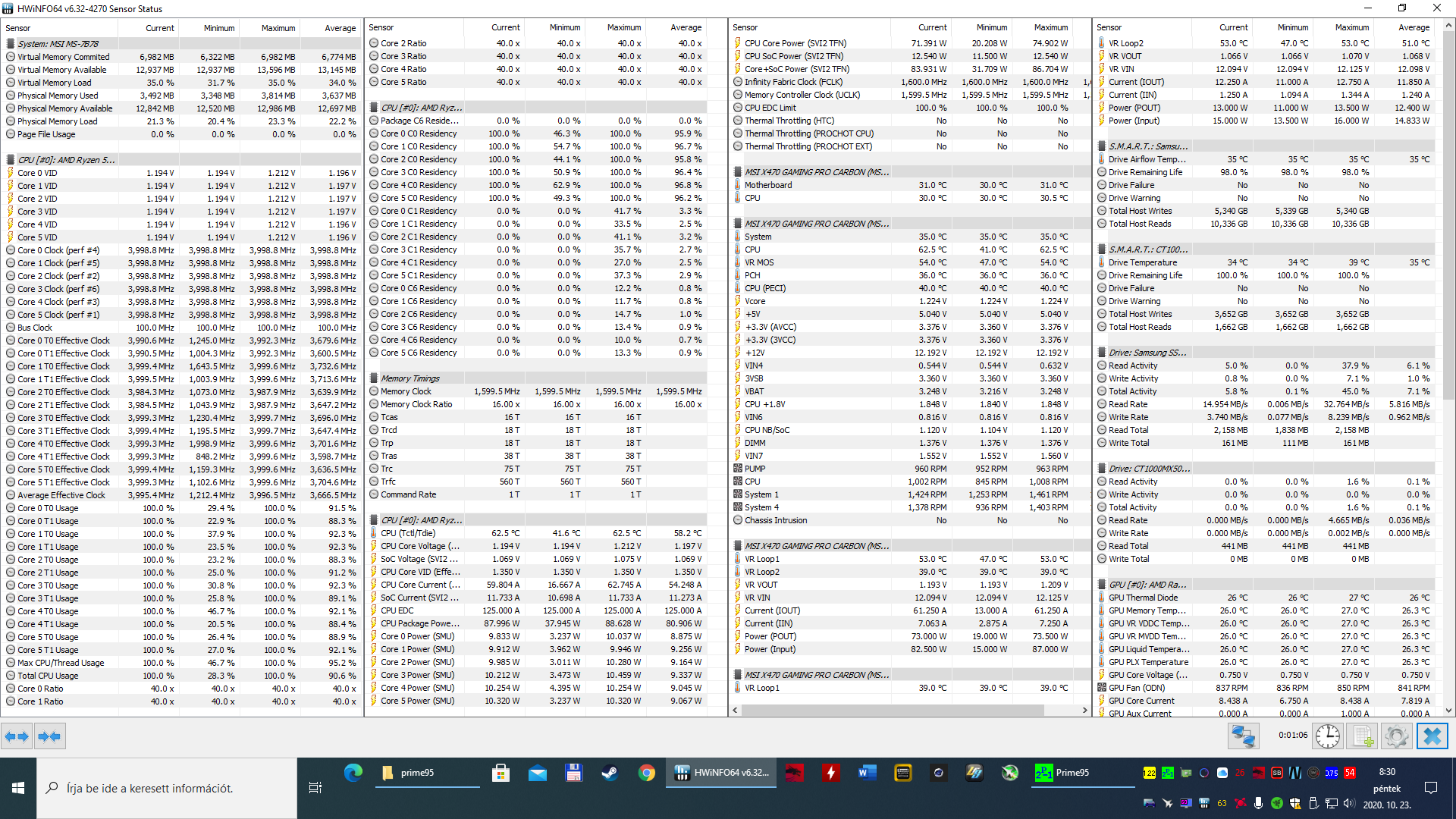 Azt hiszem akkor kezdődtek a bajok, amikor elkezdtem piszkálni a ramokat a számított adatokkal. Ott valami nem sikerült és csak a bios reset segített. Valamiért nagyon nem akarta bevenni azokat, hiába lett kiszámítva. Utólag nem is bánom, mert ami előtte volt beállítva processzornak, az minden volt csak nem jó :) jövő héten jönnek a cl14-es 3200-es g.skill ramok. Az már samsung b-die, megnéztem a jelenlegi és a következőnek kinézett alaplapba is jó lesz qvl szerint. Asus B550-e gaming, esetleg b550 Aorus master. Csak hát ez a fránya Eur/Huf árfolyam nem tesz jót semminek. Úgyhogy nem sietek, hátha a fizum is majd követi