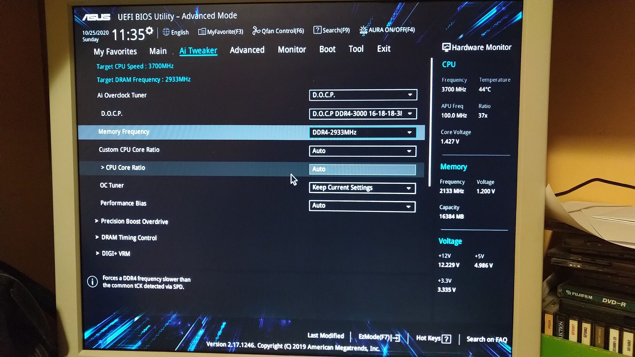 BIOS frissítve, manuálisan 1.35 V-ra és 2.933 MH-z-re lőve, továbbra is lefagy CB20 alatt....