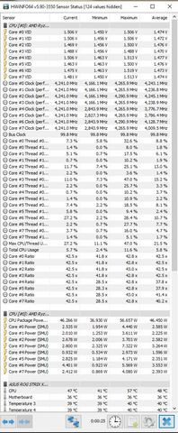 Ez azért lehetett amúgy mert az all-core boost az 4150 körül van, ha 100%ra húzod a min proci terhelést úgy nem tudja levenni egyes magokat, hogy a többit meg 4350ig boostolja, vagyis bukod a single-core boostot. Nézem a kepeket amiket küldtél.