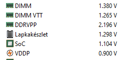 A2-B2 foglalatban van, ram feszt a dram calc szerint emeltem, sosem emeltem a megadott"max fesz" fölé. Az SOC feszültségét alapból 1.092 voltra emeli a lap, ahogy nem alap orajelen ketyeg a memória (2400mhz). Csatolok egy kis feszkós képet a jelenlegi 3000mhz-ről.