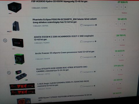 Az x470 lap, 2600, hűtés, rx480-at eladtam, utána a jelenlegi nast használtam (profilodban megtalálható). Aztán jött összesen 33e-ért a 2700, ehhez a 240es aio ventilátorok nélkül 7e-ért, nagyon olcsón a fekvő ház, használtan hűtés hiányos gtx1060 6GB és mindenre ment noctua ventilátor. -