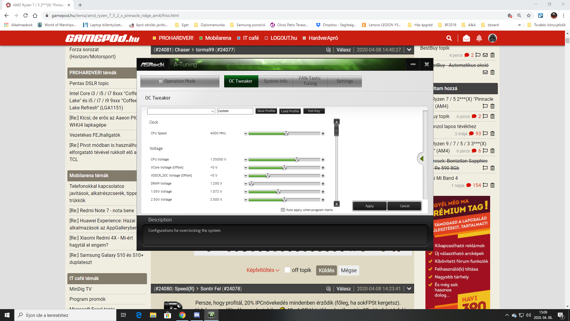 Az AMD gyári OC programmal kisérleteztem. Az se vállalható?