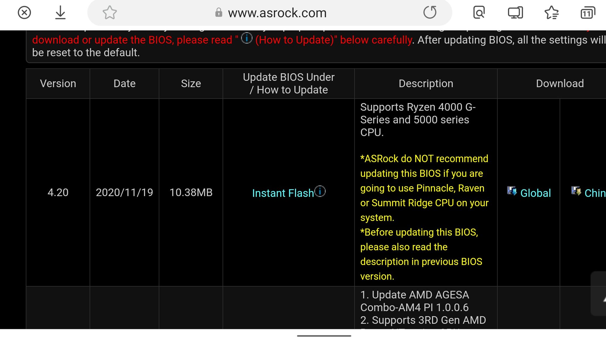Már feltettem a legfrissebb BIOS-t Ryzen 2700 mellett, minden oké is vele, de az ASRock honlapján most megváltozott a BIOS melletti leírás, és úgy néz ki, nem lett volna jó ötlet 1xxx prociról frissíteni, azok támogatása szűnhetett meg.