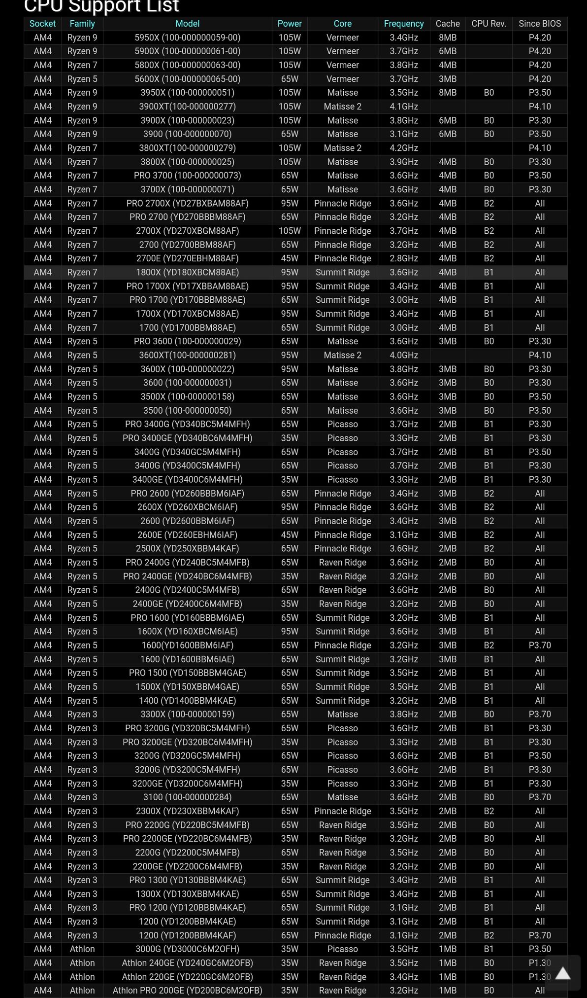 Hátha valakit érint, mert a CPU support list viszont maradt a régiben, és ott fel vannak sorolva még támogatottként az első genes Ryzenek is: