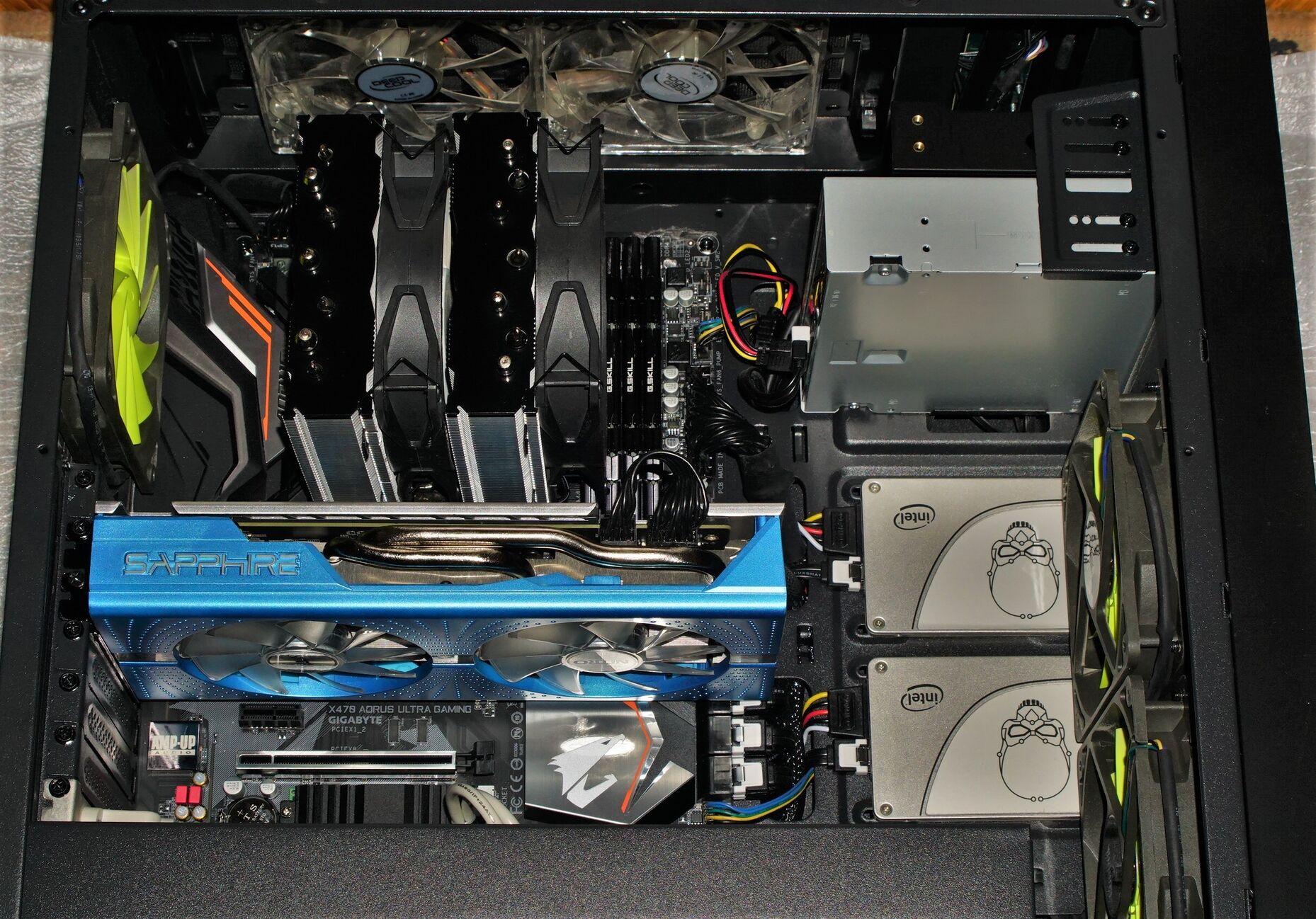 Nálam X470-es lapban 64GB RAM, 2db 1TB-os nVME SSD, RX5700 XT, 4 db SATA3-es eszköz (HDD, optikai meghajtó, 2db SSD).