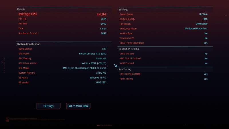 Cyberpunk 2077, TR 7960X: