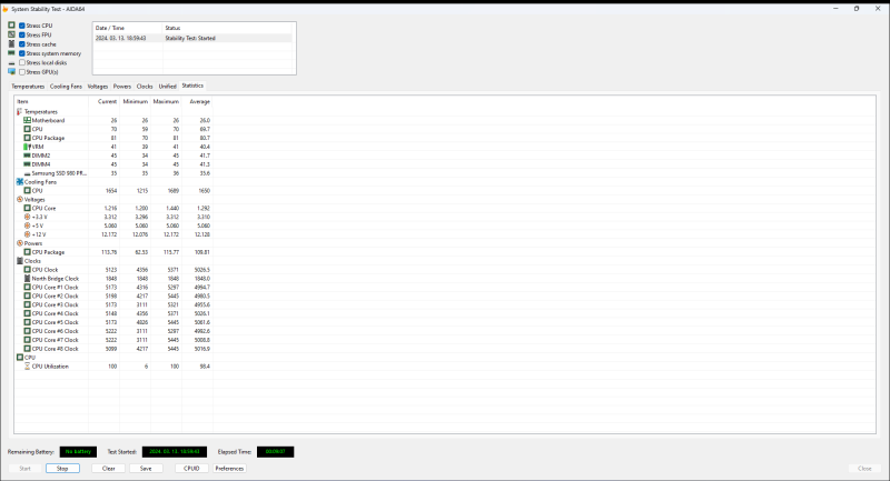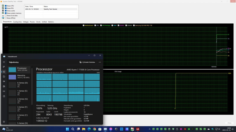 Frissült az AIDA64, nyomtam egy Stressz tesztet