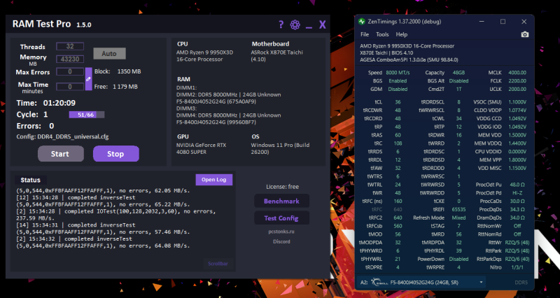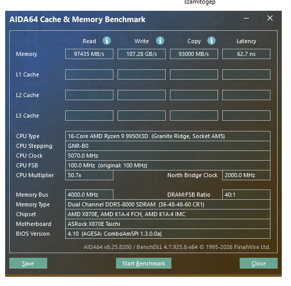 9800X3D 6400 CL28 és 9950X3D 8000 CL36.