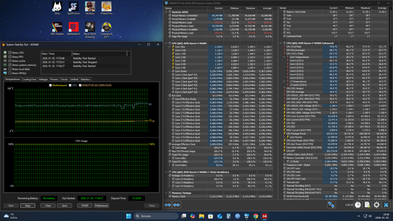 Nálam úgy tűnik bírja a 9600X-em az AllcoreCO -40-et 101-es BCLK-val. Ünnepek alatt végig így ment minden game hehe. RAM-ot nem bírta volna 6400 CL 30 2166FCLK-val, úgyhogy visszaraktam 6200 CL28 2133-ra, amit felszoroz még a 101-es BCLK. Nem is baj, legalább a Vsoc sem kér annyit.