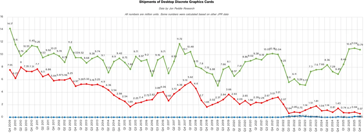 Igen igen, az elmult 15+ evben valojaban az AMD a piacvezeto, mindenki Radeont hasznal, mert 2009-ben UFO-k vettek at a JPR bazist.