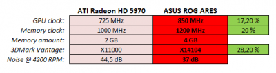 Asus says performance in 3DMark Vantage Extreme-preset is ~28% better than ATI Radeon HD 5970 reference design.