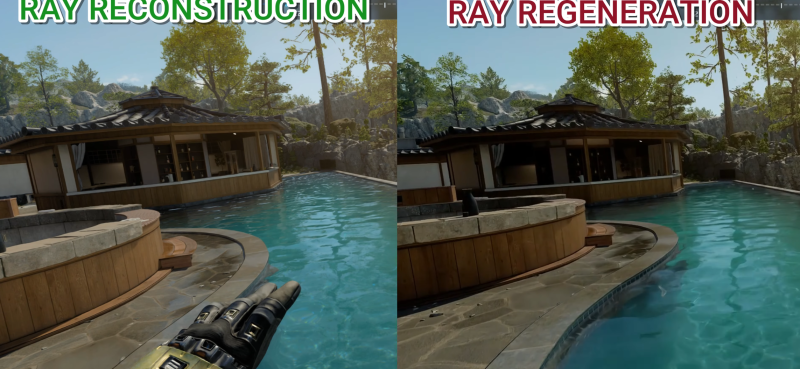 Az Nvidiánál néhol zajosabb összeségében a kép, pl a medencénél, ahol sok és megterhelő efekt van és teljesítményköltségesebb lényegesebben, 20 % is lehet az eltérés ami azért nem kevés cserébe szerintem pomtosabb.