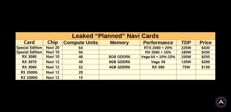 A navi 12 létezésére ha jól tudom tényleges bizonyíték nincs, ahogy navi 20-ra sincs jelenleg. Ezen kívül emlegetnek még egy Navi 10 Lite elnevezést, amit az Ariel kódnevű PCI eszközzel hoznak összefüggésbe. Valamint időnként felbukkan egy Navi 9 elnevezés is, ami innen ered, de később kiderült, hogy tulajdonképpen tévedés
