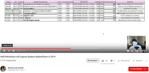 Ezzel kapcsolatban oda akartam csak kilyukadni, hogy ha igazak azok a pletykák, hogy a találtak valamilyen hibát a naviban (Navi10), ami miatt szükséges volt egy respin, az nem jelenti azt, hogy bármi, ami utána jött volna, az pont ugyanennyivel csúszott későbbre - ha egyáltalán későbbre csúszott. Bár sokan nem hiszik el, hogy a CES-en valóban lett volna navi demo - annak ellenére, hogy a Radeon VII előhúzása főleg a Mike Rayfield nyugdíjazásának szakmai okainak figyelembevételével szerintem legalább ennyire meglepő volt. Lisa Su erre az évre több navi termék indítását ígérte, márpedig ő mindig vigyáz arra, hogy mit mond.