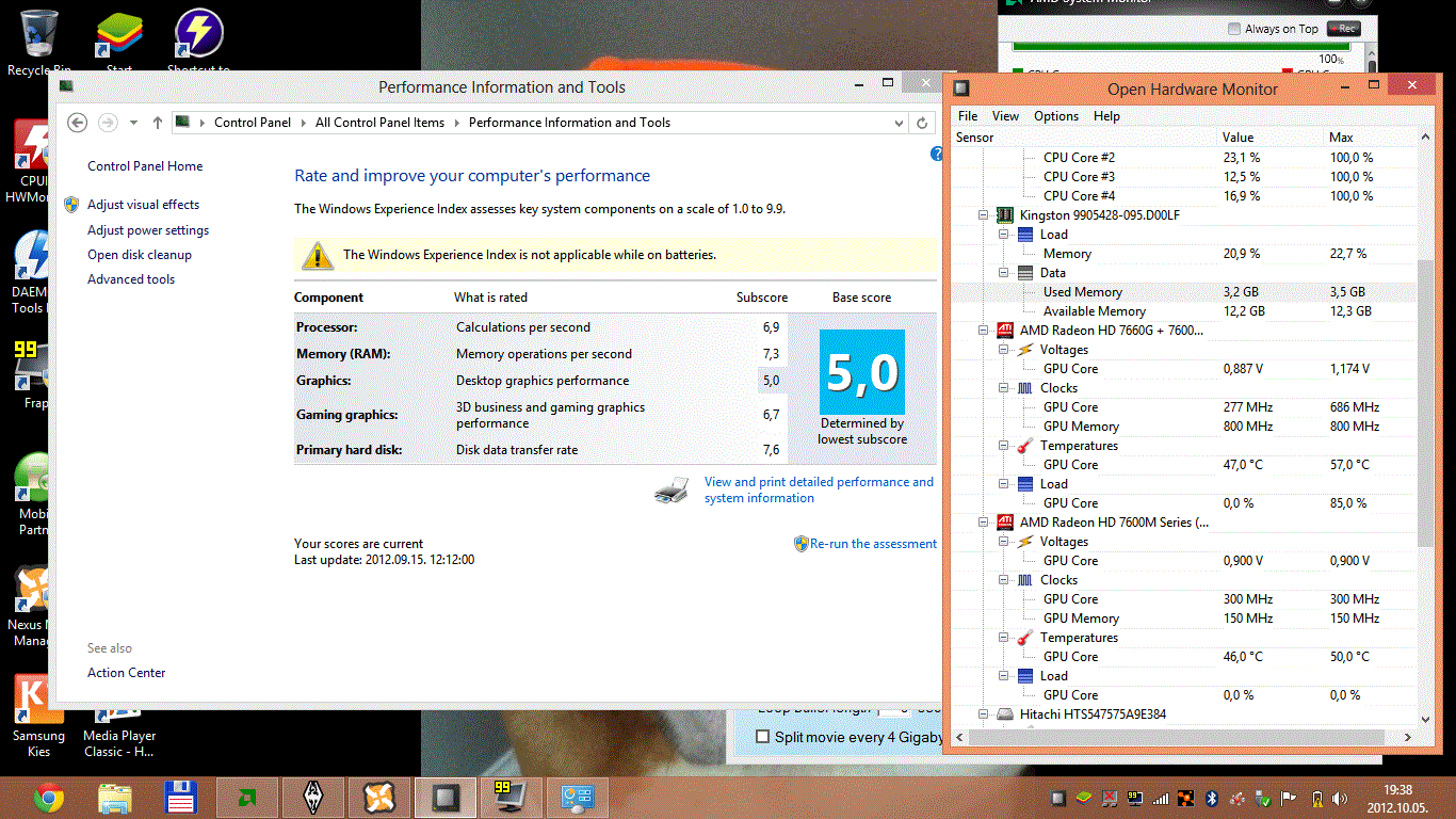 A procit játék közben pscheckel kikattintom 2700 Mhz-re 1.120 V mellett a DG-k kb 80/100 % pörög folyton és így is az APU 75-78 a dGPU 75 fokon zabál. Nektek milyen?