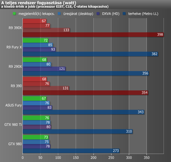 Anno PH! tesztben papírforma szerint 80 Watt többlete volt a sima 390-nek(275 W TDP) a 980-hoz(165 W TDP) képest, nem a 970-hez(148 W) képest.