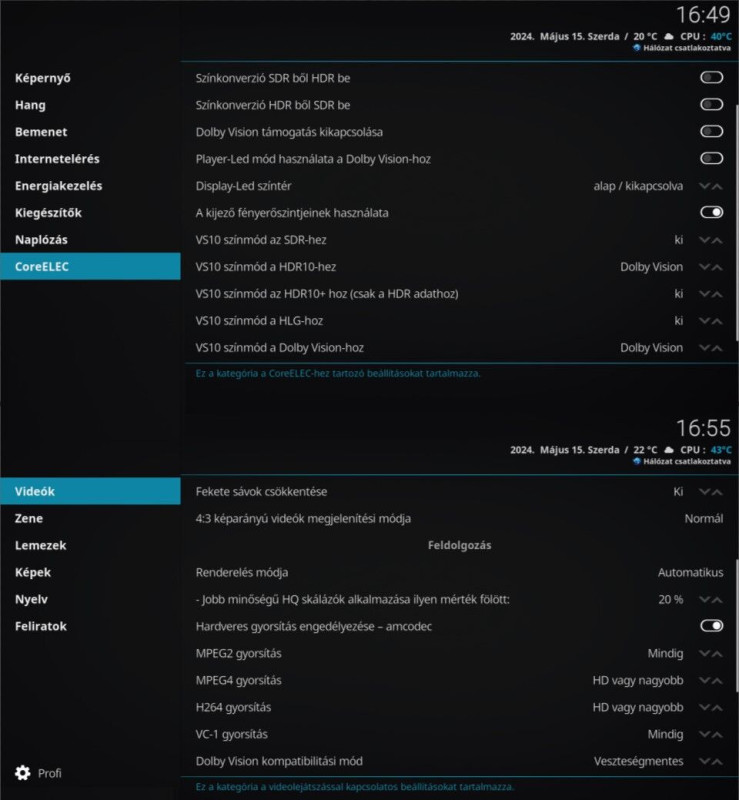 A Coreelec magyar lokalizáció sajnos azért hiányos mert csak a kodi nyelvi fájlokat frissíti, amit a CE- tesz hozzá, az csak angol verzióban elérhető.