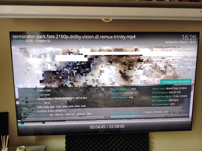 Még azt vettem észre, hogy ha nem 8 biten van, akkor a TV-n HDR módba kapcsol, ha átváltok normál módra, akkor szörnyen fakó lesz. YCbCr 8 bitesen már jobb, itt már nem kapcsol be a HDR (régi TV-men, nem az igazi a HDR, jobb nélküle), RGB-n túl sötét a kép.