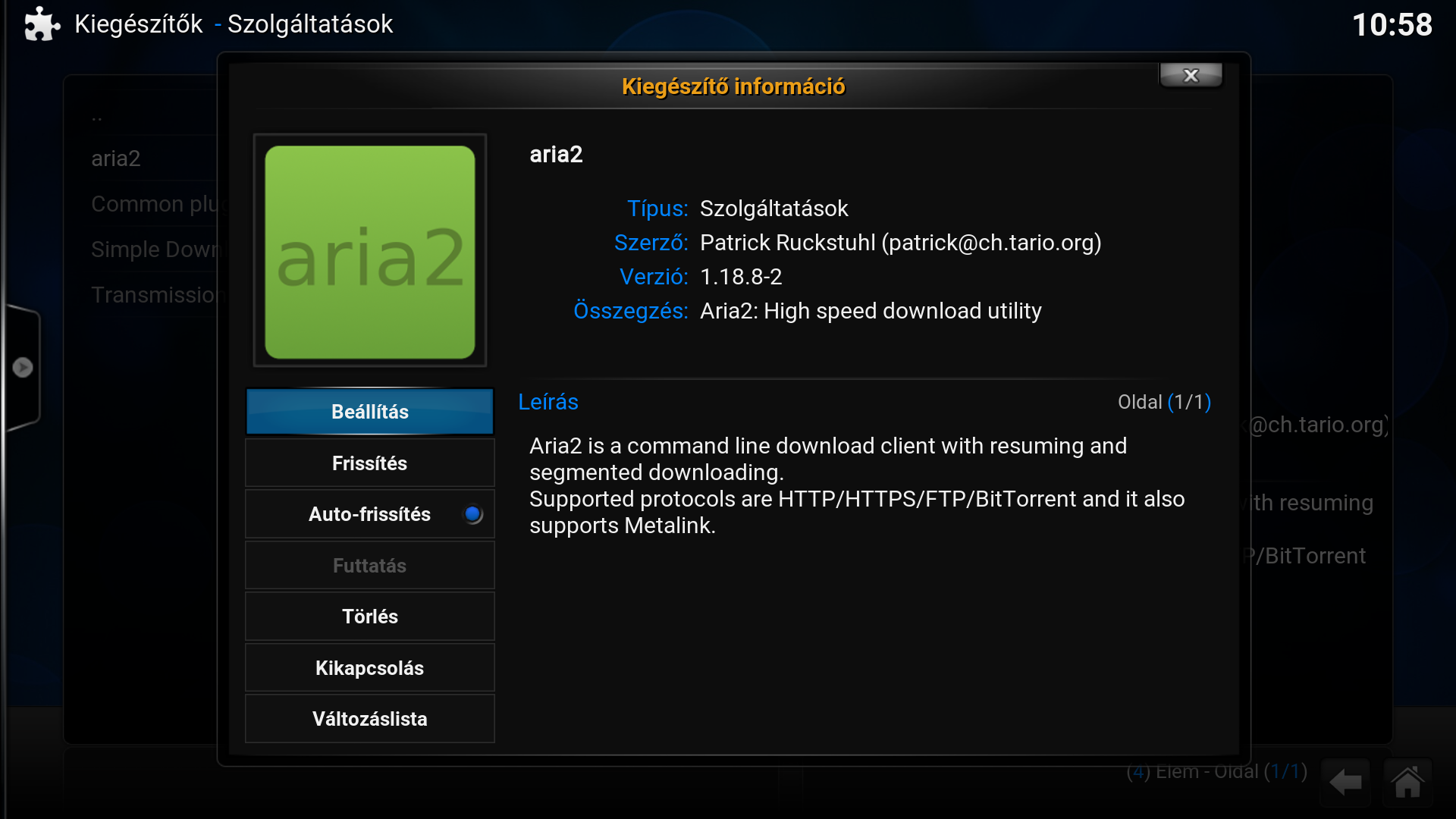 Aria2 letöltéskezelő KODI kiegészítő LE alá készülőben!