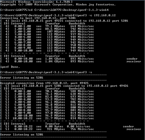 [ 5] 0.00-10.00 sec 112 MBytes 94.2 Mbits/sec receiver