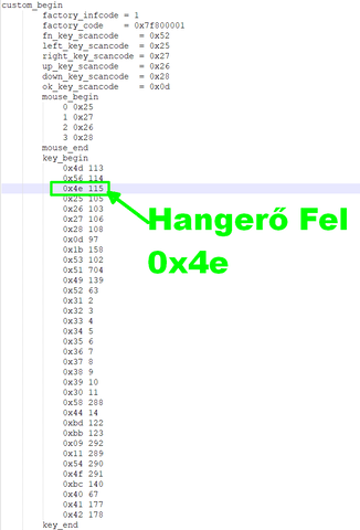 és akkor a ki olvasás pl itt a Hangerő fel gombot olvastam be aminek az értéke 4e
