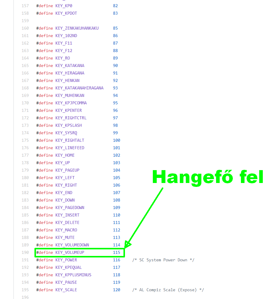 megnézed az event kódok listába hogy a hangerő fel kódja a 115