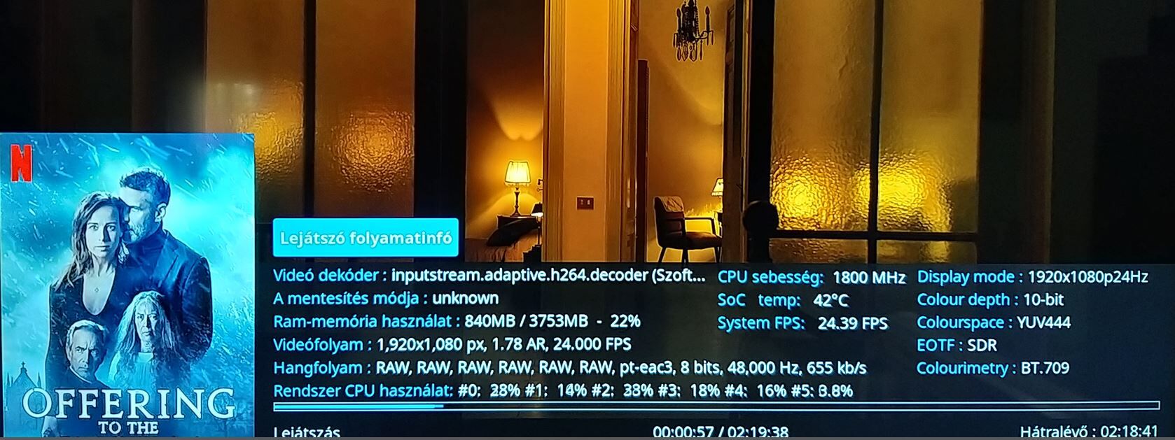 Szerk.: Még annyival egészíteném ki, hogy számítógépen is megnyitottam a kodit ami egy monitorra (FHD monitor) van kötve, és ugyanezekkel a beállításokkal és sorozatévaddal vaj sima lejátszást eredményez.