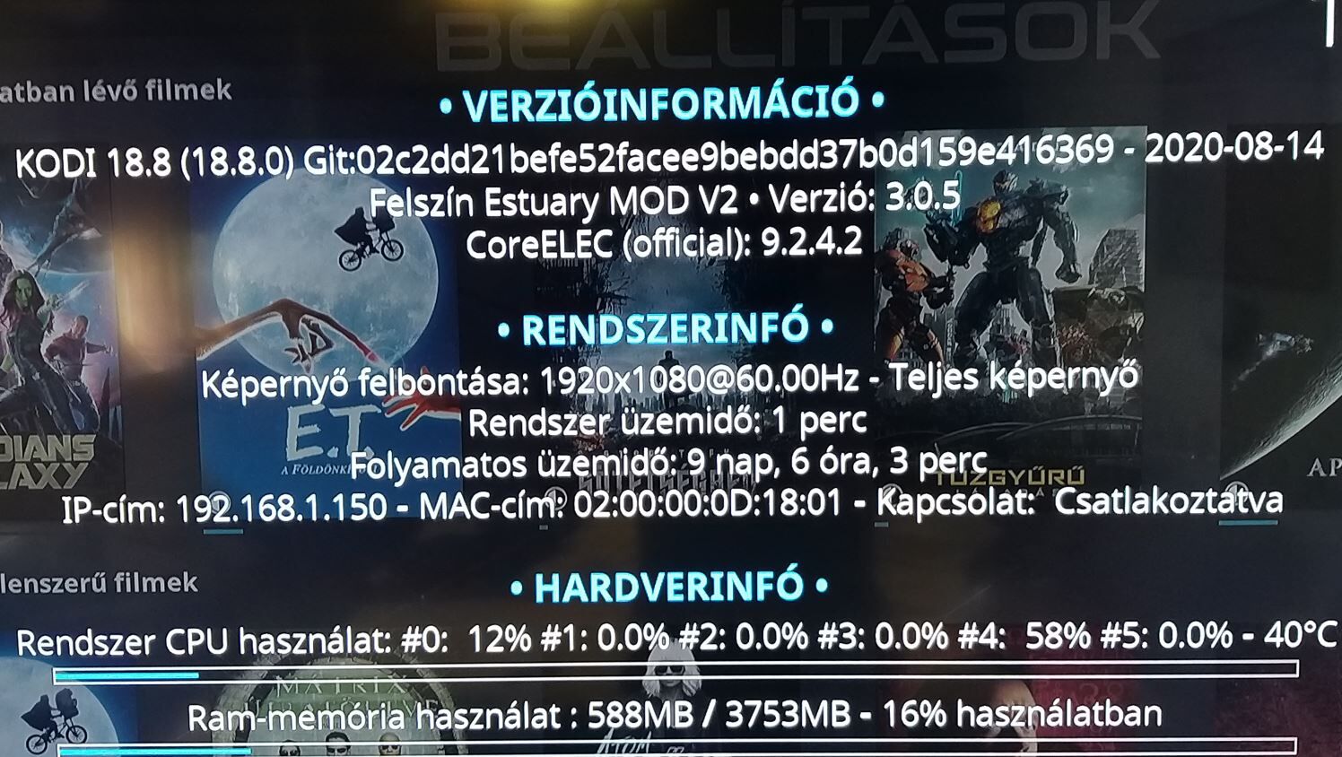 Azt még kihagytam, hogy a CE 9.2.2, a szgépen a kodi 18.6-os, a lejátszóban S922X van.