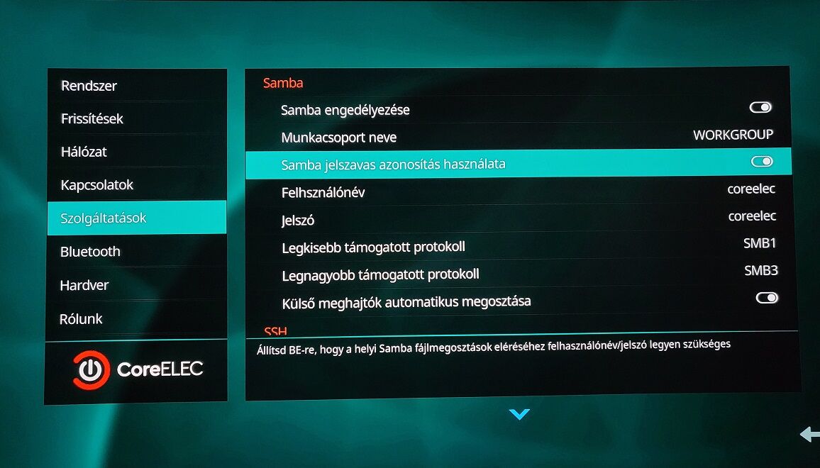 Köszi a gyors reakciókat. Természetesen nem először állítom be az SMB megosztást. Jelenleg is működik a Ugoos és Oppo lejátszókon. Volt amikor a CoreElec beállításaiba elfelejtettem bekapcsolni ezt a funkciót. Most minden be van állítva ahogy kell, de egyszerűen nem csatlakozik.