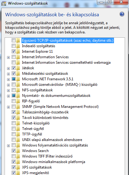Wiszont a windows szolgáltatások alatt az SMB 1.0/CIFS nem volt bekapcsolva