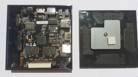 Nagyon bántott az az el szabott kivágás és az egyik hutoborda mögött volt egy réz lap két füllel. Na ezeknek a füleknek kifurtam 2 db lyukat és pont hozzá ér a bordák tétejére a lap. Körbe meg avval a rugalmas szilikonnal amivel a telok kijelzőjét rögzítik körbe nyomtam tettem rá kis karton és egy fél literes üveg vizet. Ez így holnapra rugalmassan meg köt és nen látszik a hézag. Du megint teszteltem és 63c foknál feljebb nem ment, amikor mediatar frissítést indítottam mivel vagy 3 hónapja nem kapcsoltam be na akkor ment fel 73c fokra.