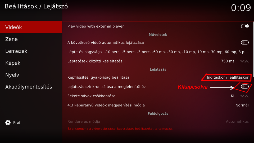 Egyébként van olyan sorozatom, amely 720x404 /25 Fps. Azzat mit fog tenni a KODI? Azon a felbontáson fogja lejátszani ami be van jelölve , ha 1080p 50fps akkor pl. azon. HA enm jelölsz be semmit akkor is lesz kadenciahelyes lejátszás, az Engedélyezési lista lényege a finomhangolás.