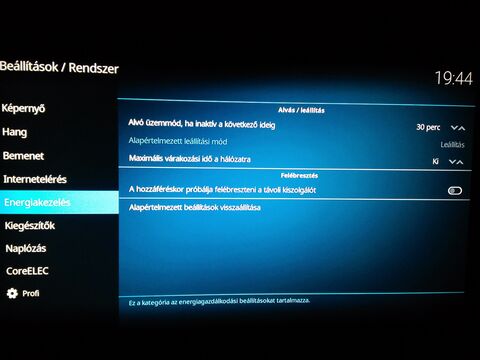 Ki van szürkítve a felirat, tehát nem aktív, nem is enged állítani rajta. És ebben az esetben 30 perc után kikapcsol. De én altatni szeretném 30perc után, nem pedig kikapcsolni. Jól sejtem, hogy a CoreELEC, egyszerűen nem tudja ezt a funkciót alapban.