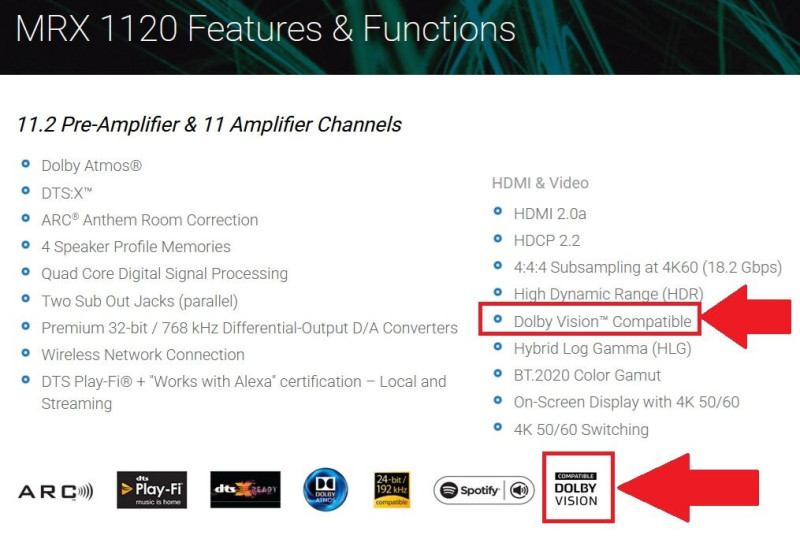 Az Anthem MRX1120 tudja a Dolby Visiont, szóval az erősítőn keresztül mindenképpen lennie kellene DV-nek. Ugye az LG G2 is tudja, szóval valamit nem jól csinálsz.