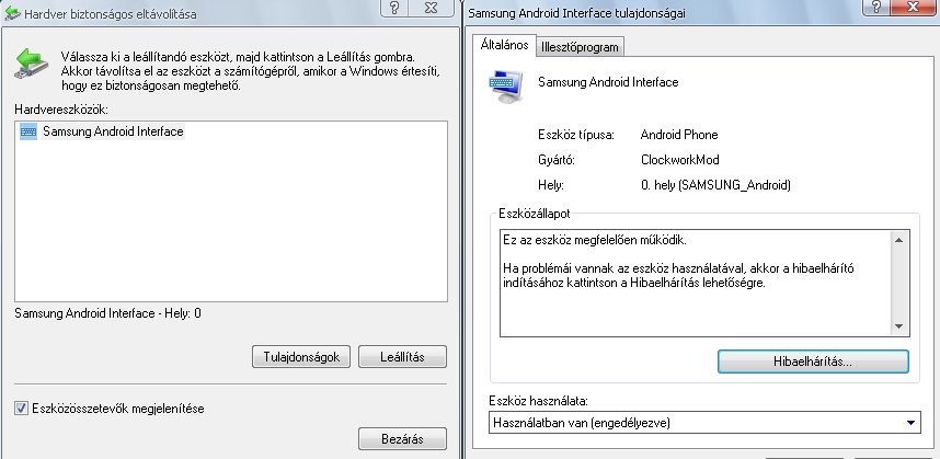 A tálcán meg is jelenik mint usb kapcsolat, Viszont mint meghajtó nem létezik sehol.